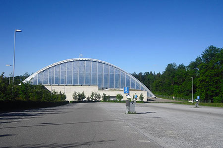 Textile supported by steel combines the high flexibility of use of this one, from reticular arches to infinite space geometries, with a singular covering applied only under optimum conditions in order to avoid abrasion and corrosion due to contact with the main bearing structure. The all-season use is guaranteed by a singular system of side opening in order to obtain maximum ventilation in the hot season.